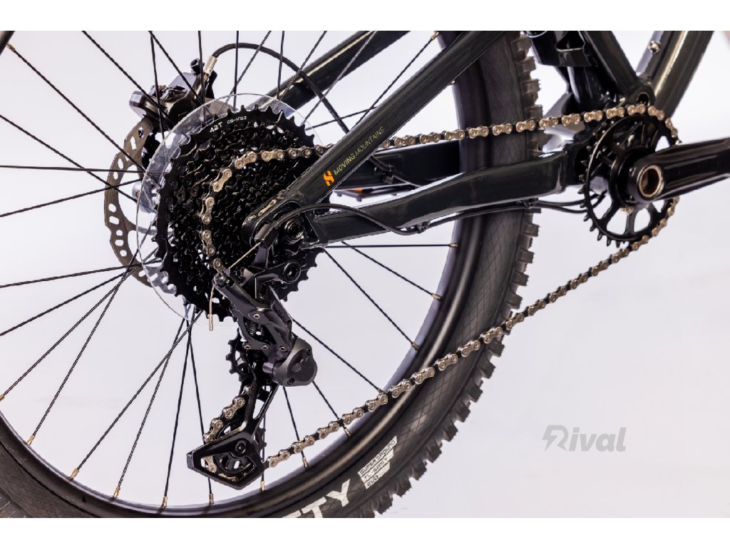 Na mě - 120 mm zadní odpružení, BSA 73, 142 x 12 pevná oska, vnitřní vedení kabelů, připravený na teleskopickou sedlovku, přestavitelný z 24- na 26-palcová kola