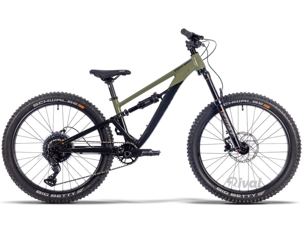 GROOT 246 woodland - První full-suspension monstrum od EIGHTSHOT! Ultimátní kolo pro mladé jezdce je tady. Hydroformed-Tubing AL 6061-T6 rám 120 mm zadním odpružením je super robustní a lehký. S BSA 73, 142 x 12 pevnou oskou a vnitřním vedením kabelů vypadá kolo čistě a funguje jako profesionál. A to nejlepší: Můžeš ho přestavit z 24- na 26-palcová kola!