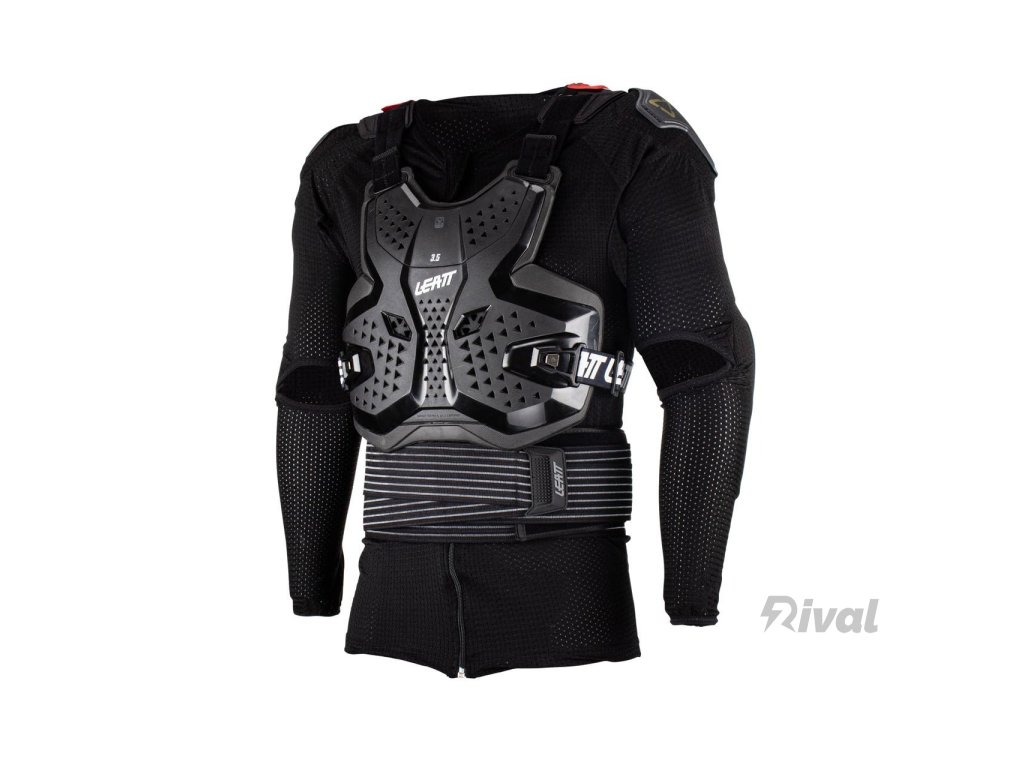 Body Protector 3.5 je nový koncept, dodává se v 2 kusy, první je zipový kompresní oblek se zabudovanými chrániči ramen a loktů a také výškově nastavitelný ledvinový pás, druhý je pevná skořepina s certifikátem CE. chránič hrudníku a zad.