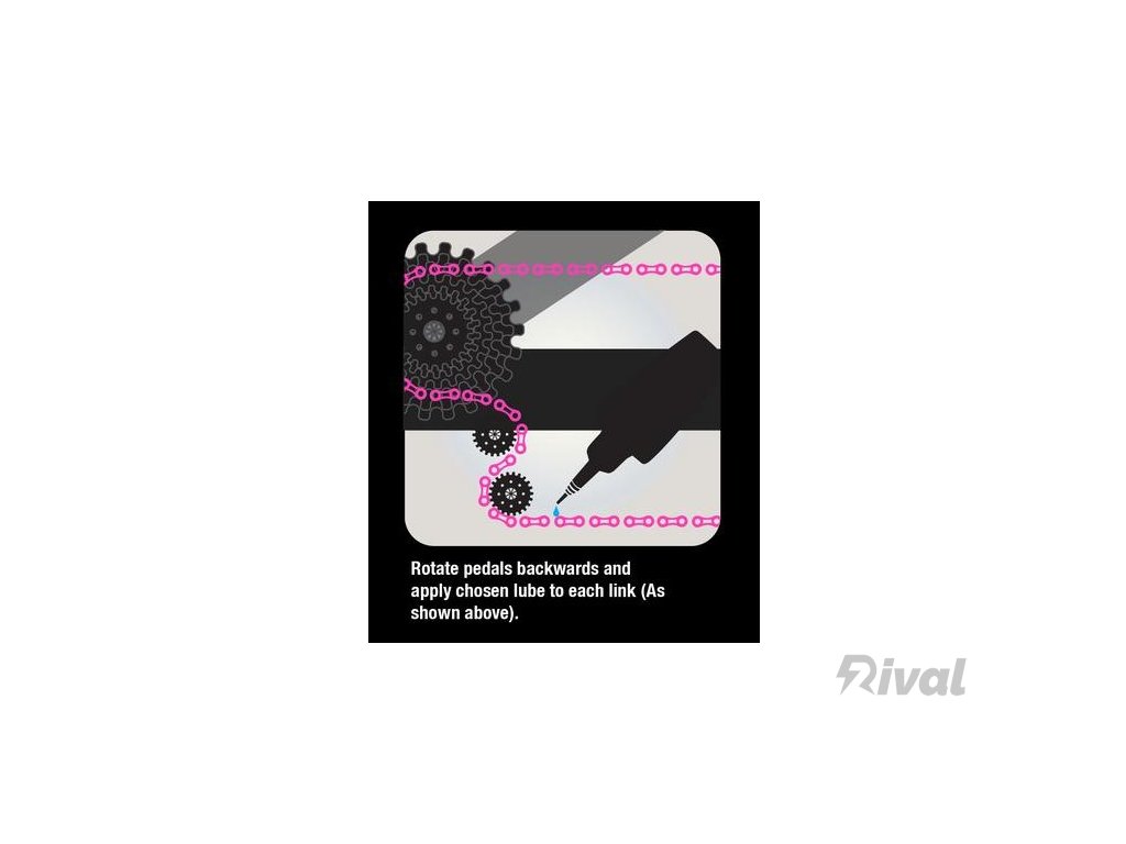 3. Naneste mírné množství maziva Bio Dry Chain Lube na vnitřní část (ne stranu) řetězu zatímco budete pohybovat pedály směrem vzad