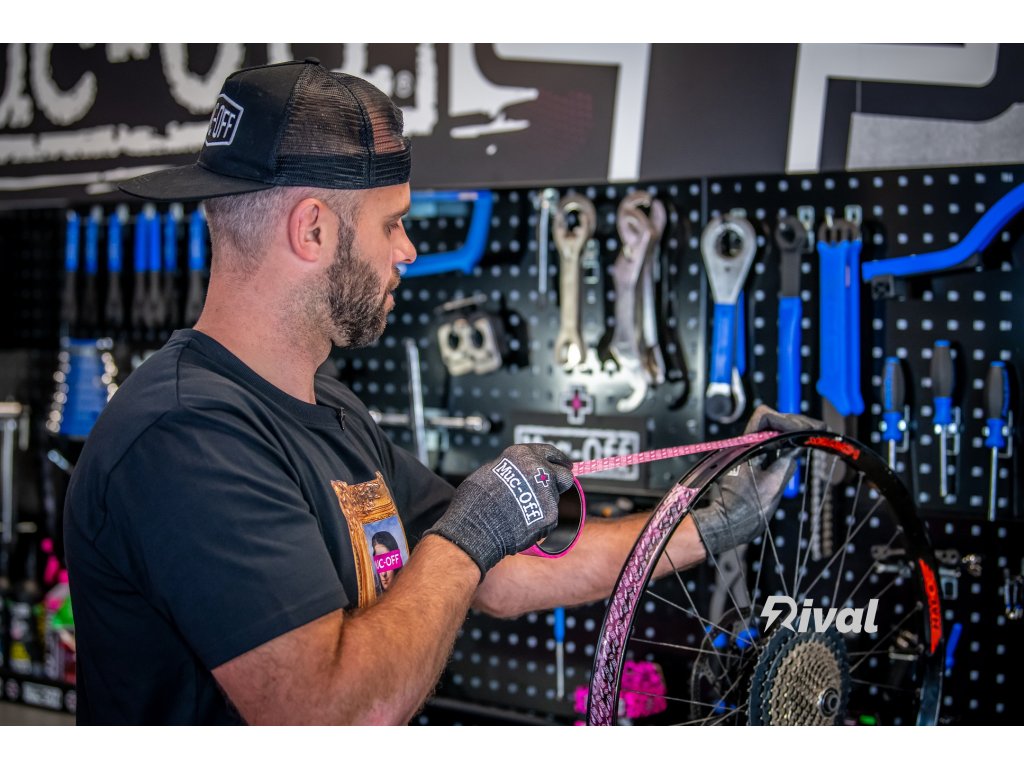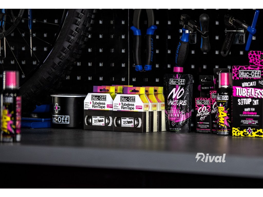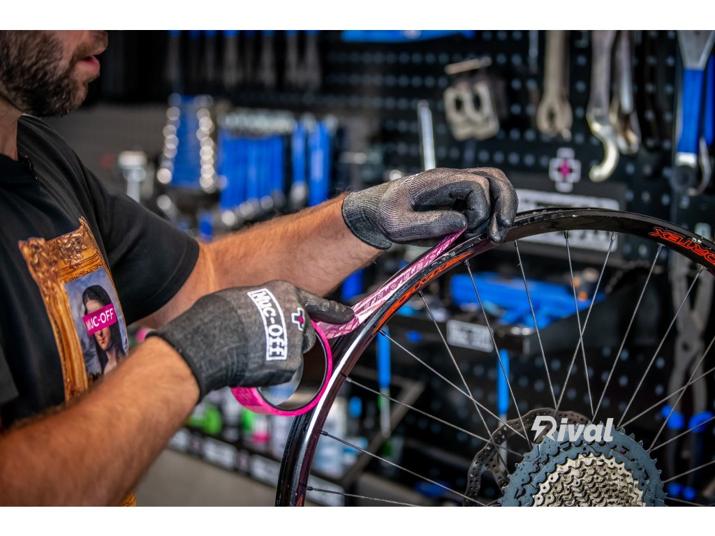 Páska Muc-Off Tubeless Rim je vyrobena z vlastního proprietárního materiálu s lepidlem citlivým na tlak, aby poskytovala správné roztahování při zachování trvanlivosti a síly potřebné k vytvoření trvalého vzduchotěsného těsnění. Poloprůhledný materiál usnadňuje umístění otvoru ventilu.