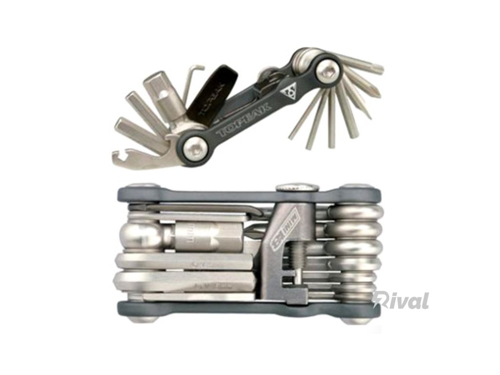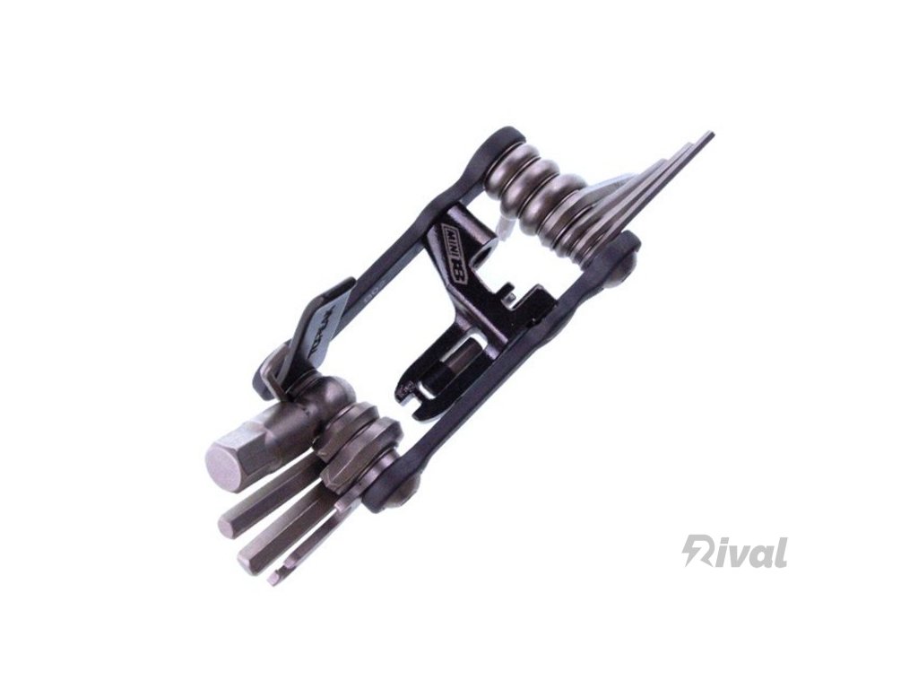 Kompaktní multiklíč z kované duralové slitiny, zahrnující až 18 nástrojů vyrobených z kvalitní tvrzené CrV oceli:• inbus 2/2-L/2,5/3/4/5/6/8/10 mm