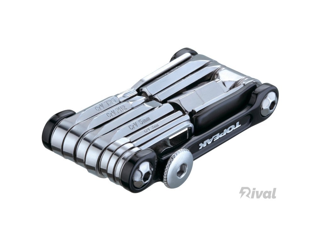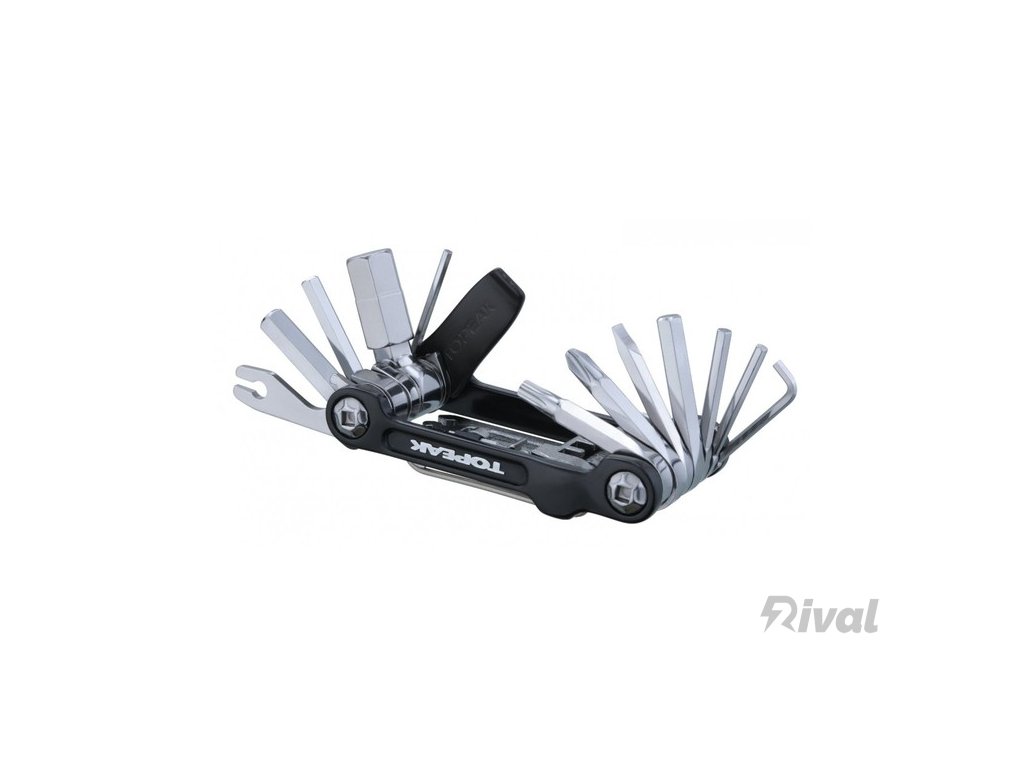 Závodní multiklíč z vysokopevnostní kované duralové slitiny, obsahující 20 nástrojů v profi kvalitě, vyrobených z kvalitní tvrzené oceli:• inbus 2-L/2,5/3/4/5/6/8/10 mm