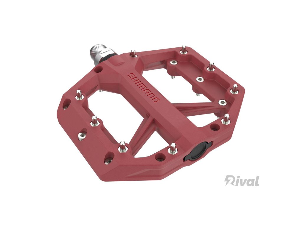 Pedály MTB PD-GR400 bez zámku. Odolné pedály typu Flat pro různé jízdní styly v terénu. Široký tvar pedálu pro lepší komfort, stabilitu a účinnost šlapání do pedálů. Velikost platformy 101x96mm. 9 vyměnitelných pinů na každé straně. Kompozitové tělo a osa s odolnou a tuhou konstrukcí. Typ: MTB, Celková váha balení: 562g, Použití: Enduro/Trail, oboustranné, Flat, červené, Materiál: tělo pedálu (kompozit), osa (chrom+ocel)Doplňkové parametry