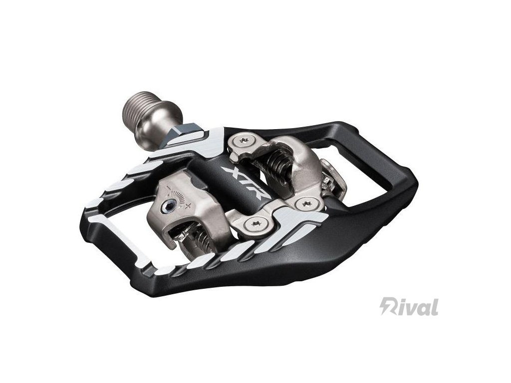 Širší kontaktní plocha mezi pedálem a tretrou zvyšuje stabilitu a zlepšuje na efektivnost přenosu síly. Integrovaná kletka chrání zámek před nárazy a poškozením. Laděno pro použití s tretrami AM a ME. Nastavitelná síla zámku pro upnutí a vypnutí zarážky. Dodáváno spolu se zarážkami SM-SH51. Typ: MTB, Celková váha balení: 398g, Použití: Enduro/Trail/AM, oboustranné s klecí, SPD, černé, se zarážkami SM-SH51, Materiál: tělo pedálu (hliník), osa (chrom+ocel) Po 27 letech vývoje jsme právě tam kde se vše začalo: u komponentů, speciálně vyvinutých. Navrženy jsou tak aby splňovaly nejnáročnější požadavky s nepřekonatelnými jízdními vlastnostmi. Nové XTR M9100 přináší nejuniverzálnější sadu určenou pro XC, Enduro a Maratony.Doplňkové parametry